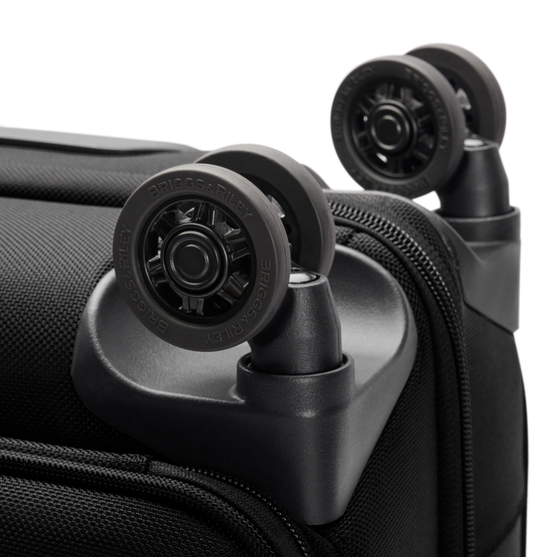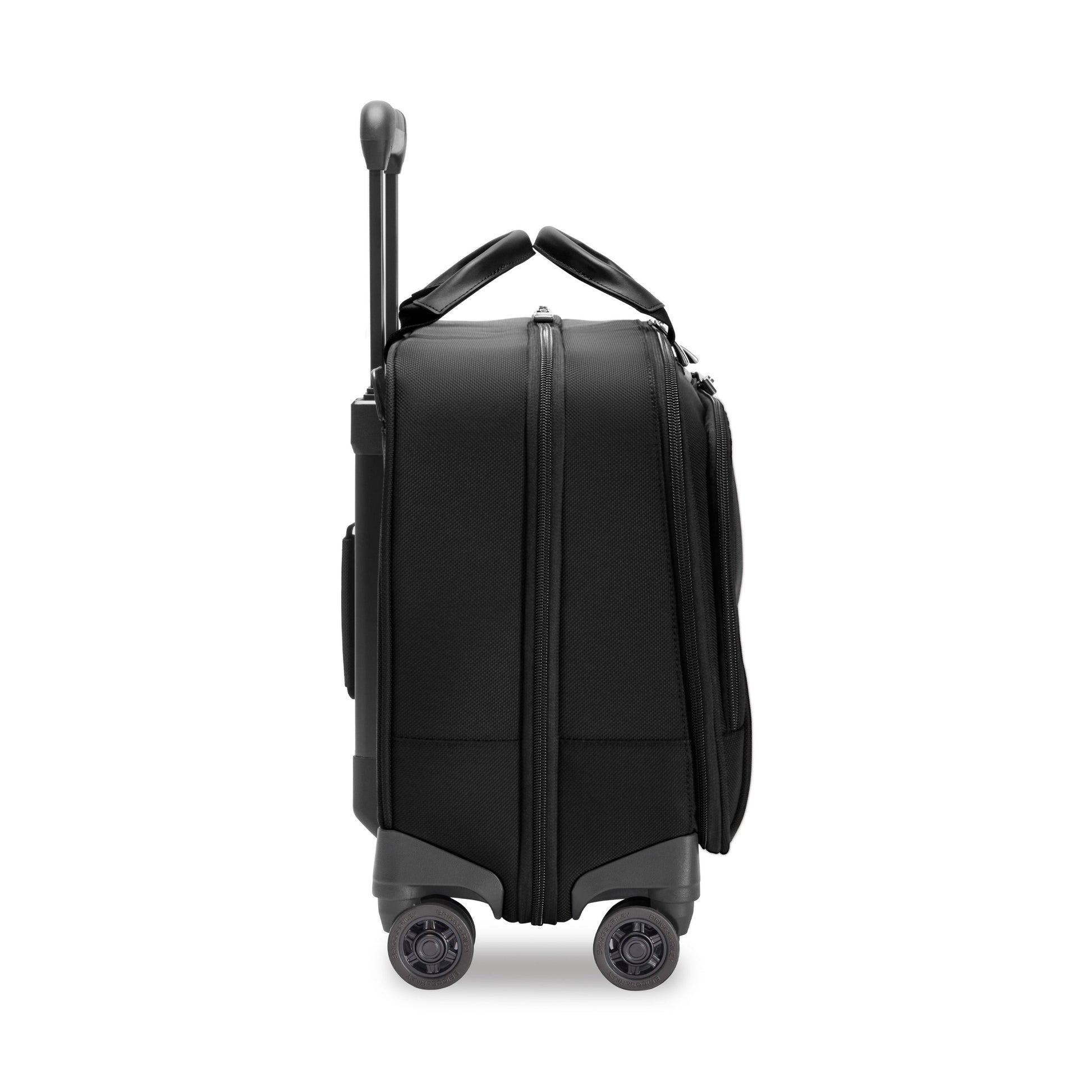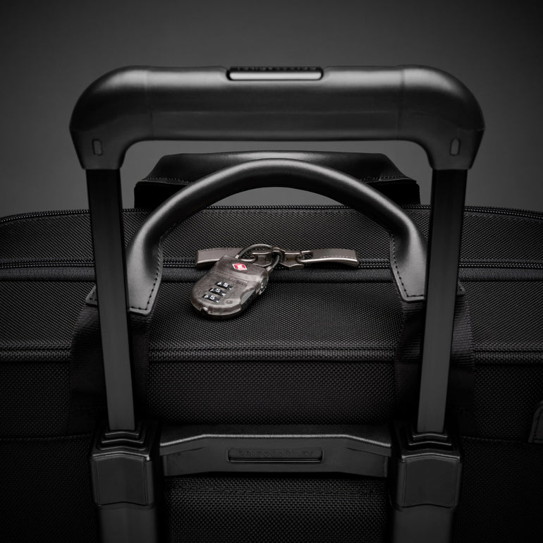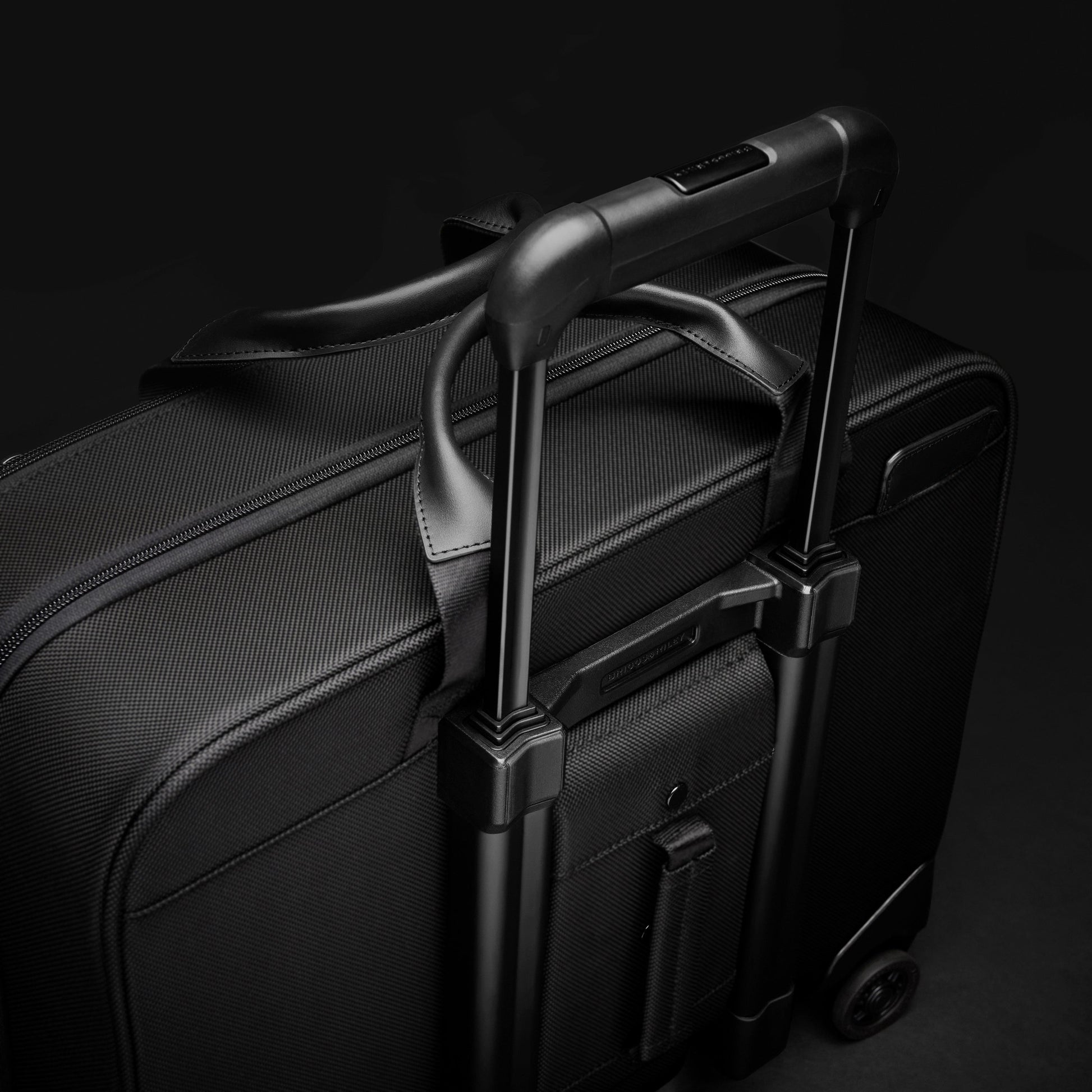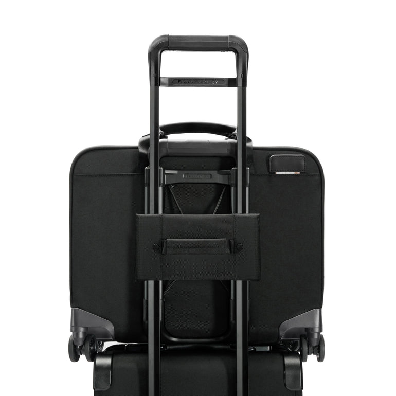 - Transportez deux sacs en un avec le système de poignée interlock. Empilez le sac sur un bagage à roulettes Briggs & Riley.
