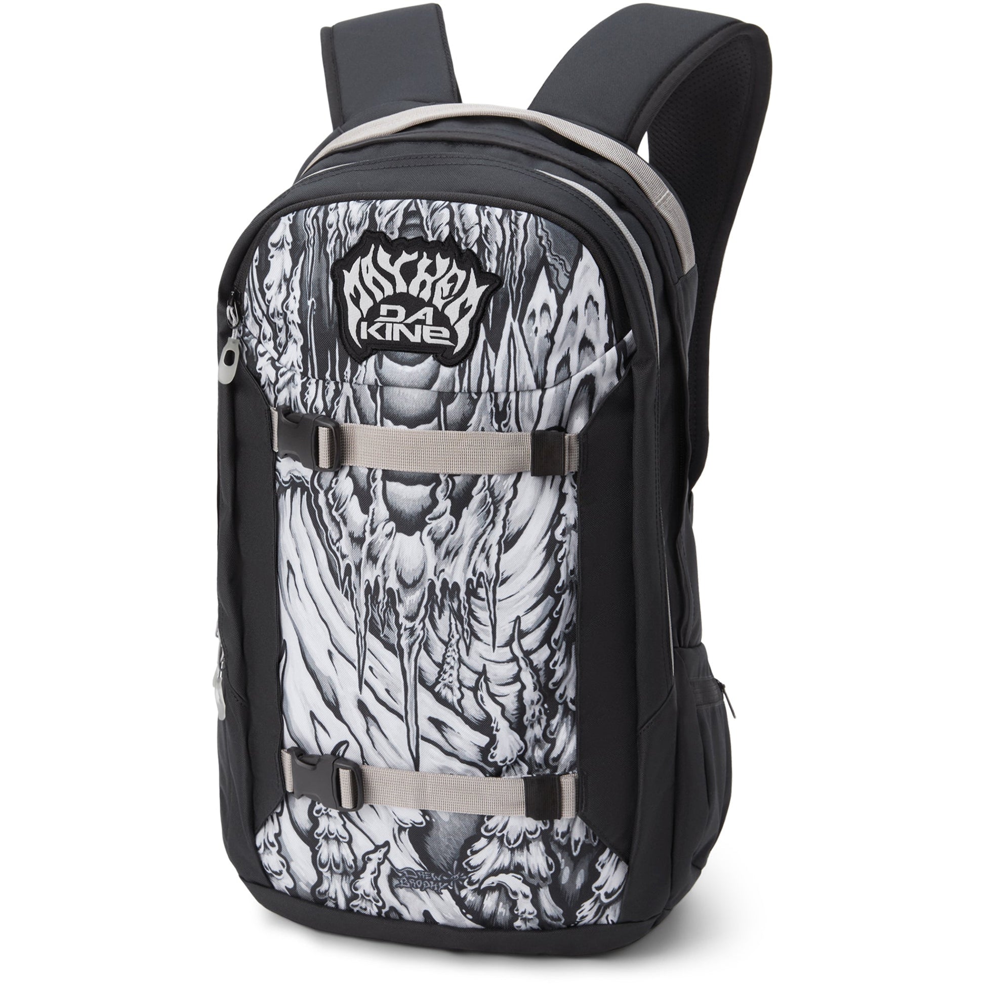 Le partenariat entre Dakine et Mayhem réunit deux marques partageant une passion commune pour l’innovation, la disruption et le design. Cette dernière collection présente des œuvres de Drew Brophy, ami et collaborateur de Mayhem.