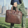 Gardez vos dossiers, accessoires et ordinateur portable bien organisés avec cette grande mallette en cuir à double soufflet. Son cuir de buffle lisse et souple, teint à la main, développe une belle patine au fil du temps. Le sac possède une fermeture zippée sur le dessus et un compartiment rembourré pouvant accueillir des ordinateurs portables jusqu’à 17". Il comprend également une grande poche zippée à l’avant et à l’arrière pour garder vos objets essentiels — comme votre portefeuille, téléphone ou documents de voyage — sécurisés mais facilement accessibles en déplacement. Une sangle arrière permet de fixer le sac à n’importe quelle valise à roulettes lors de vos déplacements.