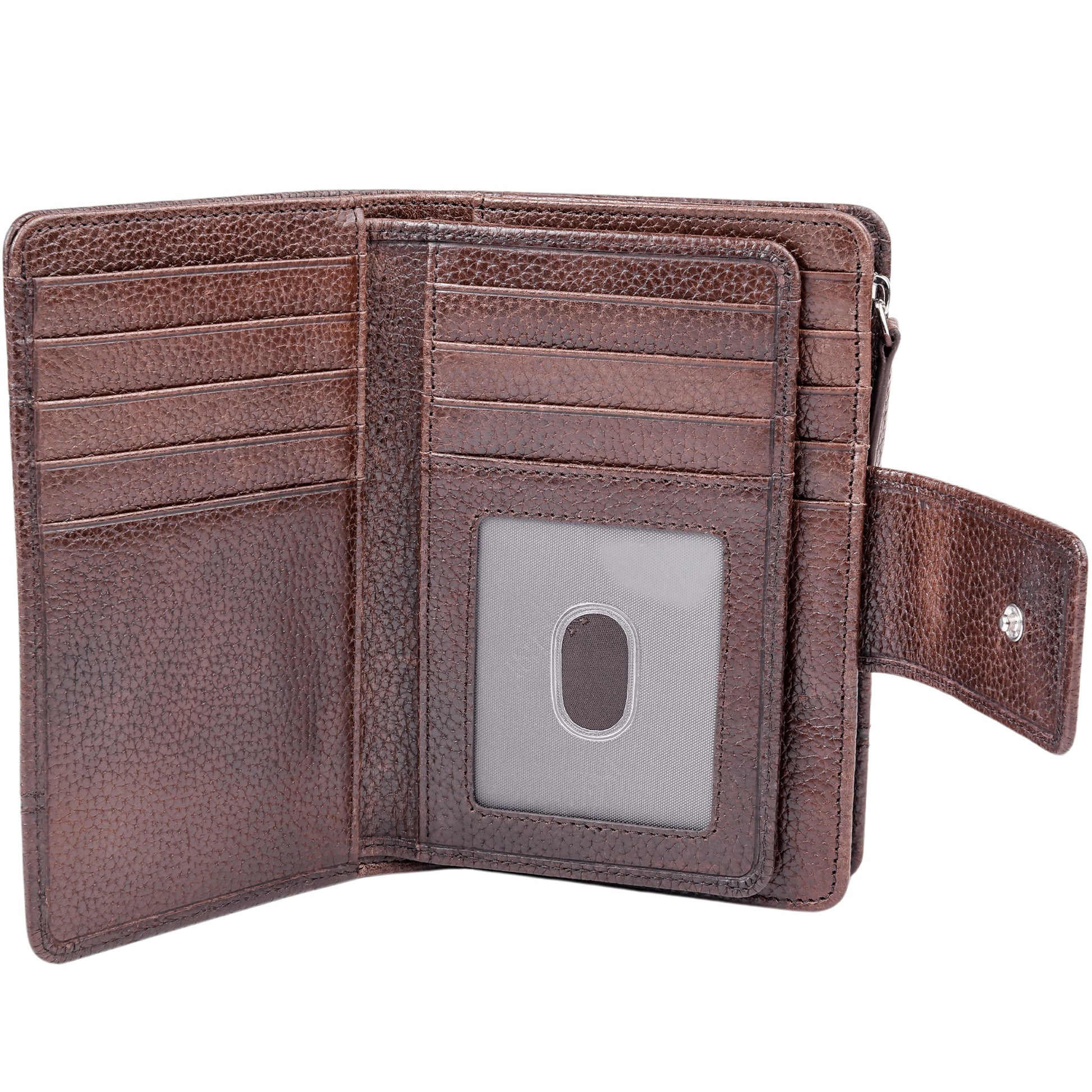 This classic trifold wallet will hold all your personal documents and more. Numerous slots and pockets will organize all your cards, I.D.s, tickets, receipts, etc. It also features a divided compartments for coins.