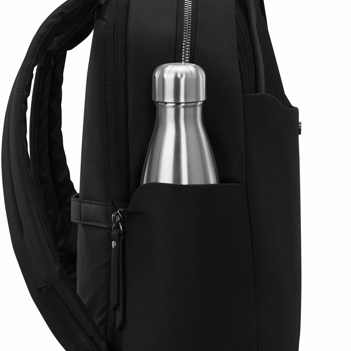 - Zippered water bottle pocket