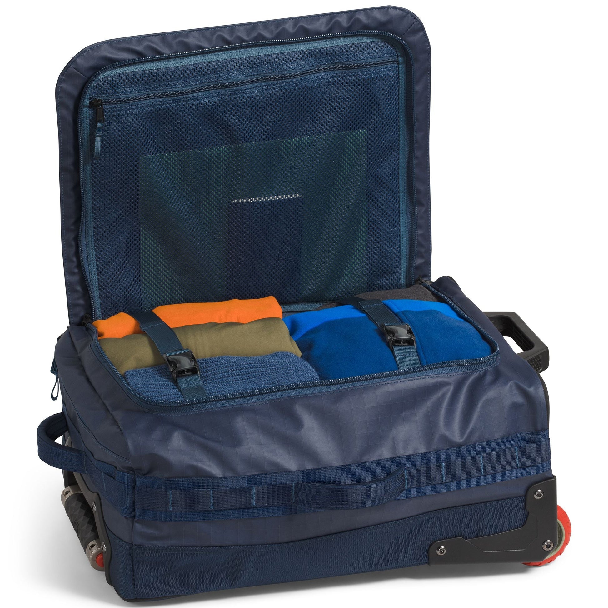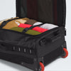 Notre emblématique sac de sport Base Camp Voyager est la source d'inspiration pour ce nouveau sac à roulettes. Fabriqué en tarpaulin polyester recyclé durable mais léger, avec un châssis ultra-résistant, il est conçu pour résister aux rigueurs des transports à travers le monde. Mais il n'est pas seulement robuste; il est aussi extrêmement pratique. Les deux roues à roulement fluide et la large poignée télescopique rendent ce sac à roulettes confortable à transporter dans les aéroports et en ville. À l'intérieur, une housse pour ordinateur portable de 15" protège votre appareil. Le grand compartiment interne est doté d'un séparateur zippé pour garder les chaussures sales ou l'équipement mouillé à l'écart de vos vêtements propres. Et bien qu'il offre beaucoup d'espace pour les essentiels de voyage, les sangles de compression vous aident à trouver de la place pour encore plus de choses. Sans oublier les poches supplémentaires à l'intérieur et à l'extérieur pour un accès rapide et facile à votre passeport, téléphone, portefeuille et clés.