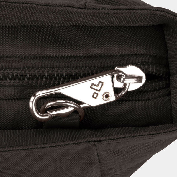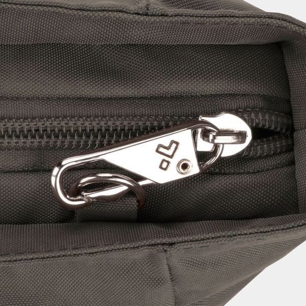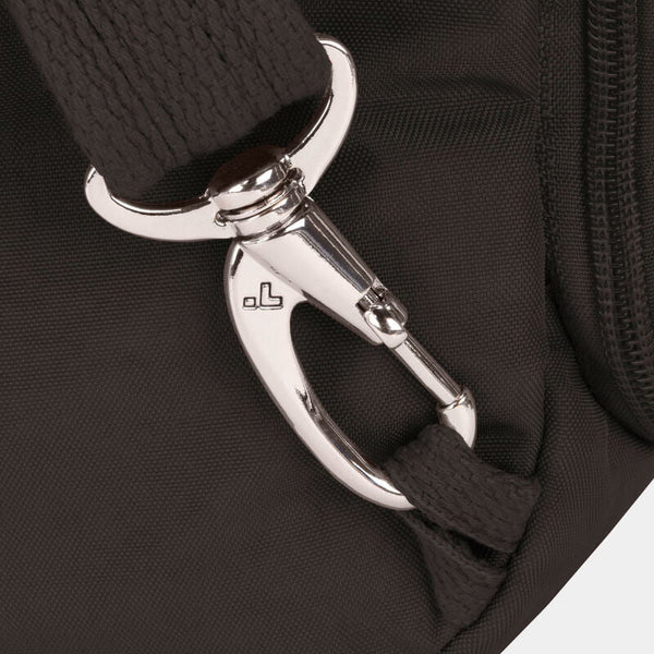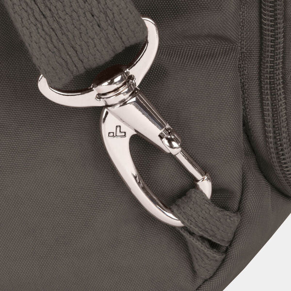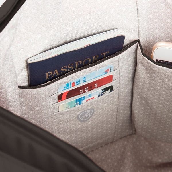 Maintenant, vous pouvez arrêter de surveiller votre sac et regarder le monde devant vous. Notre système de sécurité antivol à 5 points intégré protégera vos objets de valeur des pickpockets et des voleurs. Il comprend une barrière en maille résistante aux coupures sur les 4 côtés et les panneaux inférieurs du corps; une sangle résistante aux coupures et verrouillable; des compartiments verrouillables; et un organisateur bloquant les signaux RFID. Travelon emballe votre sac avec tranquillité d'esprit.