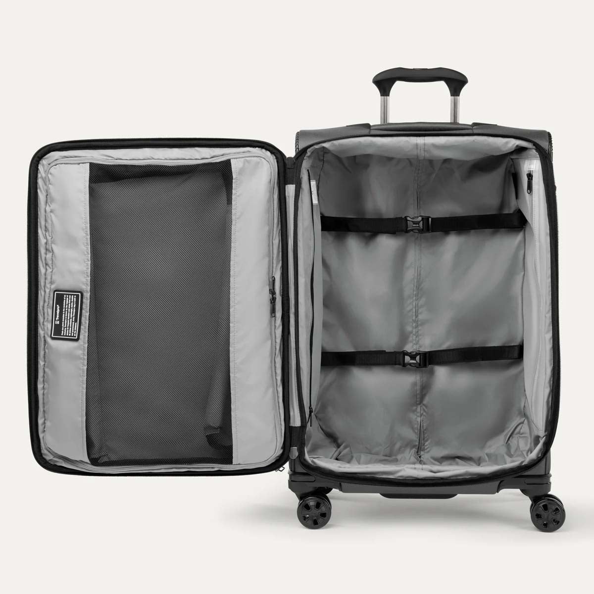 Arrivez sans pli grâce au fold-out suiter amovible, conçu pour protéger les vêtements suspendus contre les rides. Des sangles de maintien intérieures, un espace de rangement résistant à l'eau et plusieurs poches pour accessoires ajoutent à l'organisation, gardant tout à sa place et facile à trouver.